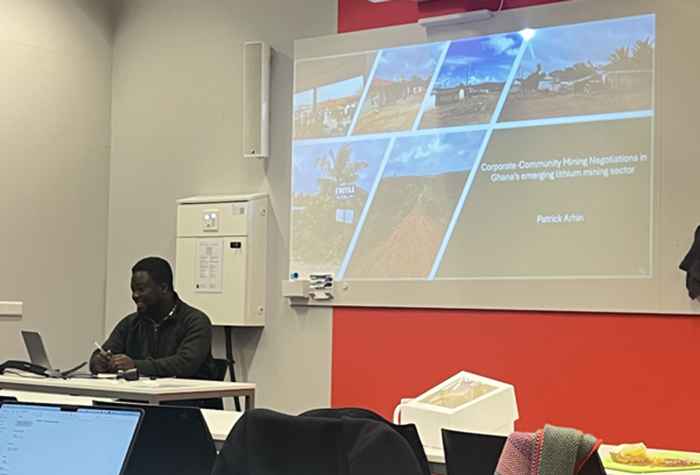 The first seminar, led by Patrick Arhin, examined how belief systems and prophecies from deities influence expectations, claims, and demands in corporate–community mining negotiations in Ewoyaa, Ghana. Rather than approaching negotiations solely as technical or economic processes, Patrick highlighted their moral and spiritual dimensions.